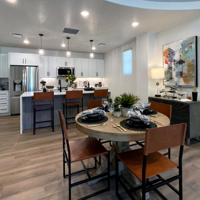 esigned to help prospective residents envision life at The Hacienda at the River, this model residence reflects the community’s ethos of authenticity, comfort, and understated sophistication. Goebel Design Group created an environment that feels both curated and personal—where every detail suggests a life well-lived.