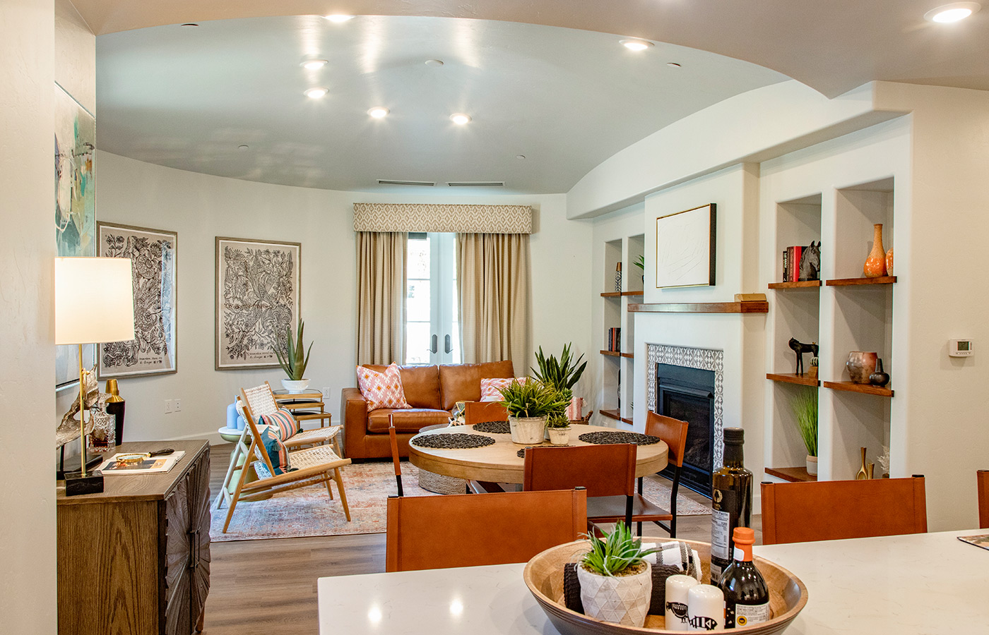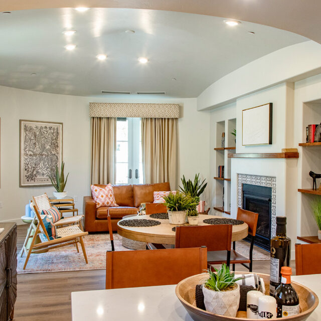 The interiors balance a design-forward spirit with a warm sense of hospitality. Eclectic layers of art, textiles, and natural materials bring depth and individuality, while the layout maintains an open, easy flow suited to daily living. A mix of handcrafted elements, regional references, and modern furnishings invites connection to the desert setting without sacrificing elegance or comfort.
