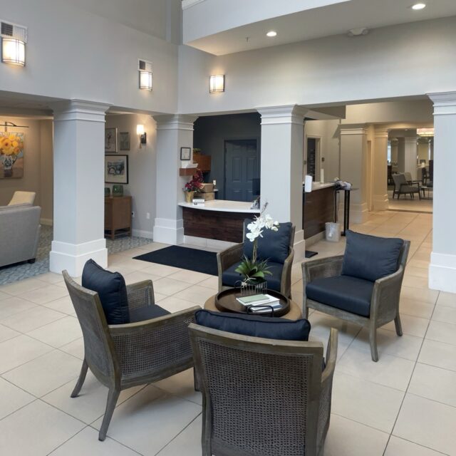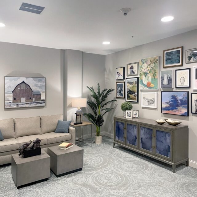 uilding on the success of the previous year’s connector corridor refresh, Goebel Design Group returned to Watermark at Pinebrook to reimagine the lobby and first-floor corridors—spaces that form the social and visual heart of the community. The goal was to create continuity throughout the property while introducing new opportunities for residents to gather, relax, and connect.